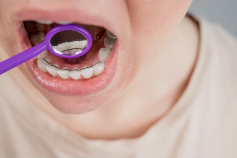 These are permanent retainers that are bonded to the back of the teeth. They are usually used for the lower front teeth and can be used to correct minor misalignments.